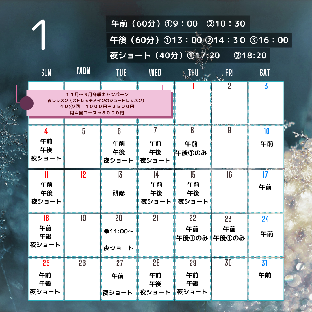 1月5週目 25日(日)~31日(土)のご予約